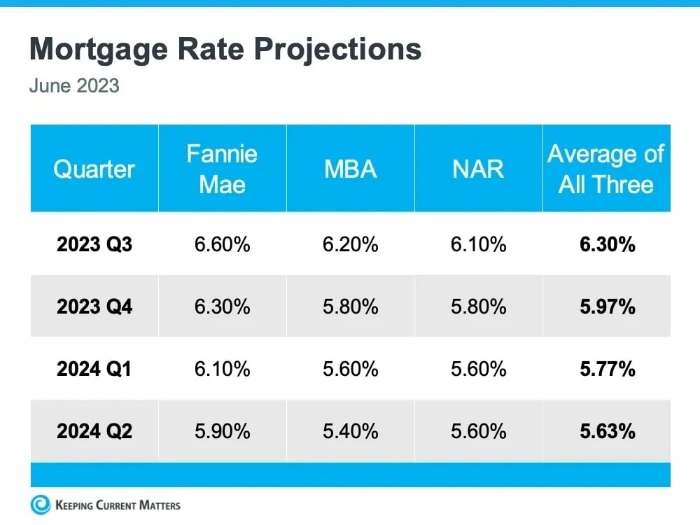 When inflation cools, mortgage rates generally fall in response. This may be why some experts are saying mortgage rates will pull back slightly over the next few quarters and settle somewhere around roughly 5.5 and 6% on average.